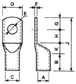 | SR.NO. | AREA MM2 | CABLE SIZE | E | A | C | D | F | B | K | H | G | J | CAT.NO. |