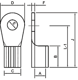 | SR.NO. | AREA mm2 | CABLE SIZE | E | A | C | D | F | B | L-1 | J | CAT.NO. |